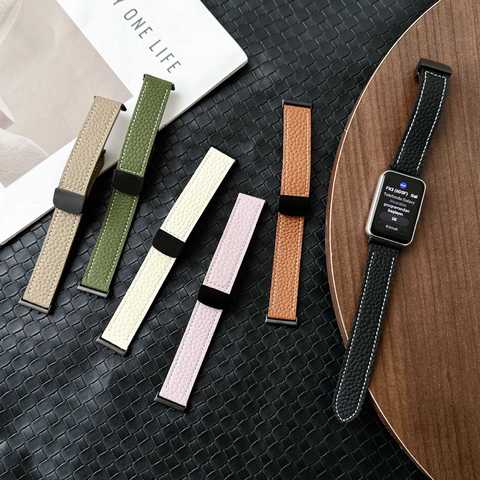 حزام مشبك أسود ممغنط من Lychee عصري لسامسونج جالاكسي Fit3 ساعة ذكية لجلد Galaxy Fit3